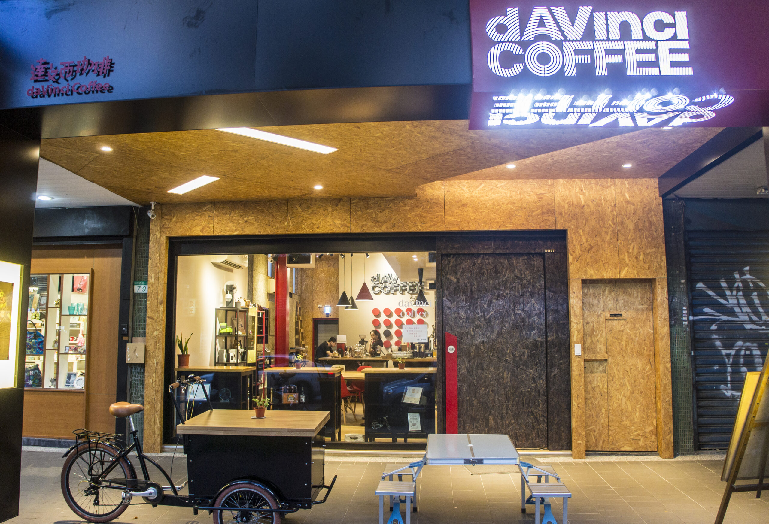 從2003年開業之始,達文西咖啡就以結合自行車店與咖啡店的複合型式經營。本身熱愛自行車與咖啡的蔡治宇(Yuing),早在高中時期就開始接觸咖啡與自行車,如今興趣變成了專業,專業變成了工作。他除了是專業的咖啡烘豆師及咖啡課程講師,在自行車專業上也有教授騎乘或維修方面的資格,甚至還曾做過自行車的客製化支架設計等,接觸層面非常廣泛。Yuing笑說:「不敢說達文西咖啡在國內的知名度如何,但是當時的達文西單車,我敢說是國內極具指標性的!」