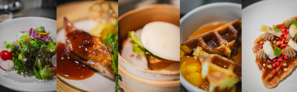 以咖啡為序曲,展開一場晨間美食的文化漫遊。林泉主廚靈活運用Nespresso多元風味膠囊,融合台灣在地、國際都會城市概念的食材,精心打造五道晨食創作—從沙拉、輕食到富有創意的台味料理,巧妙展現咖啡與料理之間的風味交織與感官呼應。透過一杯咖啡與一