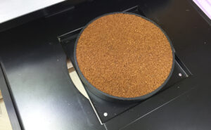 當葉面有三分之一至三分至二呈現紅褐色,聞起來帶熟果香,便可以炒菁了。此時也已隔日凌晨,製茶人眼皮正重,卻更需打起精神!因為炒茶是重要的關鍵,一翻兩瞪眼,炒得好、香茶熱銷沒煩惱;炒不好,前功盡棄無處銷。白毫烏龍茶在重萎凋下,其含水量較低,因此炒菁溫度相較於其他部分發酵茶要低,約為包種茶的八分火力,當炒到菁味消失、散發熟果香,手握略有刺手感便完成了。茶菁從炒鍋出來之前,必須先準備好濕布,一下鍋就馬上用濕布包覆靜置,回潤到無刺手感即可。藉由溼熱作用可以導致化學成分快速轉變,有效提升熟果味,使水色轉紅、滋味更溫醇,同時也藉由回潤,水分重新分布,可避免揉捻時產生過多碎葉及茶末。