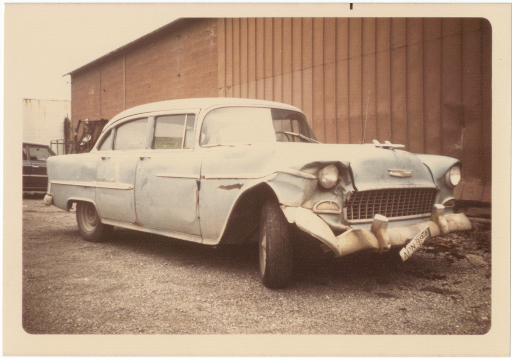第一輛星巴克外送車照片:一輛後座被拆除的1955年二手雪佛蘭,頭燈後方甚至以木板支撐,見證草創時期的克難精神。