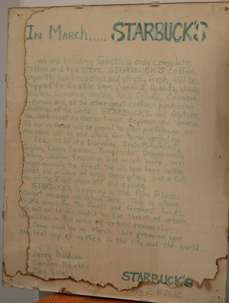 創立宣言:曾張貼於星巴克全球第一家門市,由已故創辦人Gordon Bowker親筆書寫。